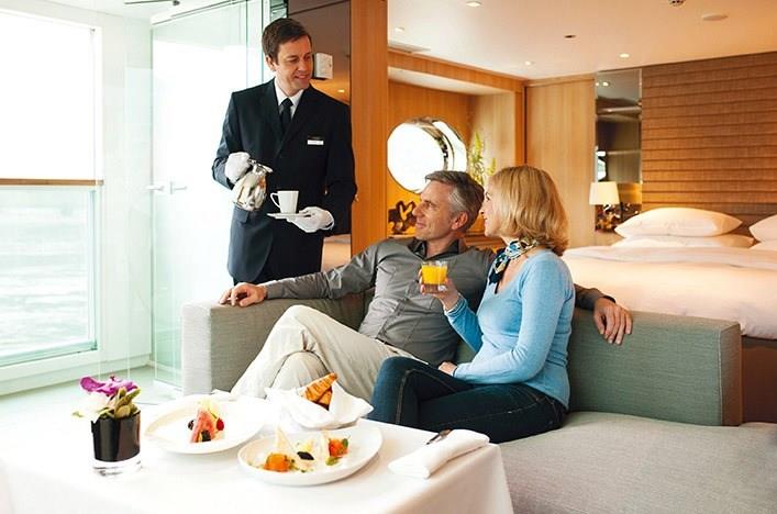 Choose to dine in the comfort of your luxurious suite while taking in the incredible views and enjoy included room service throughout your cruise.